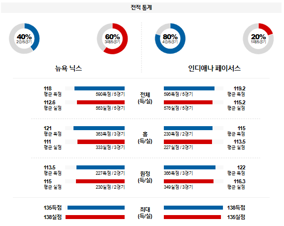 4차전 패배를 당했지만 리바운드에서 우위를 기록한 뉴욕 이였다. 서로 다른 장점을 보유한 빅맨 전력을 구축하고 있는 뉴욕이 리바운드 싸움에서 우위를 바탕으로 홈에서 반격에 성공할 것이다.