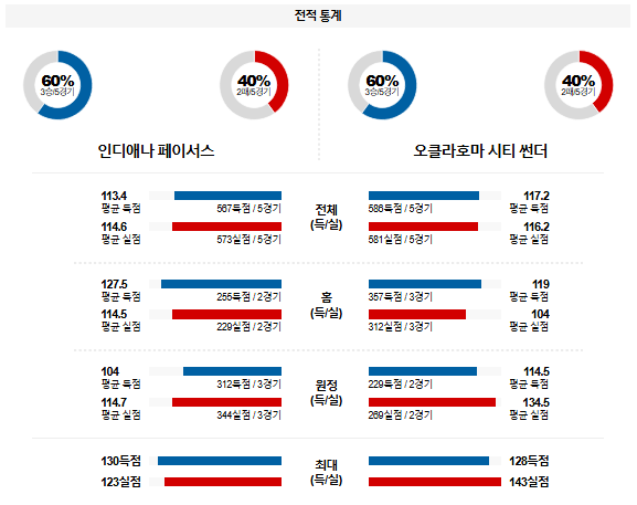 정규시즌 맞대결에서는 오클라호마가 2연승 기록했다.